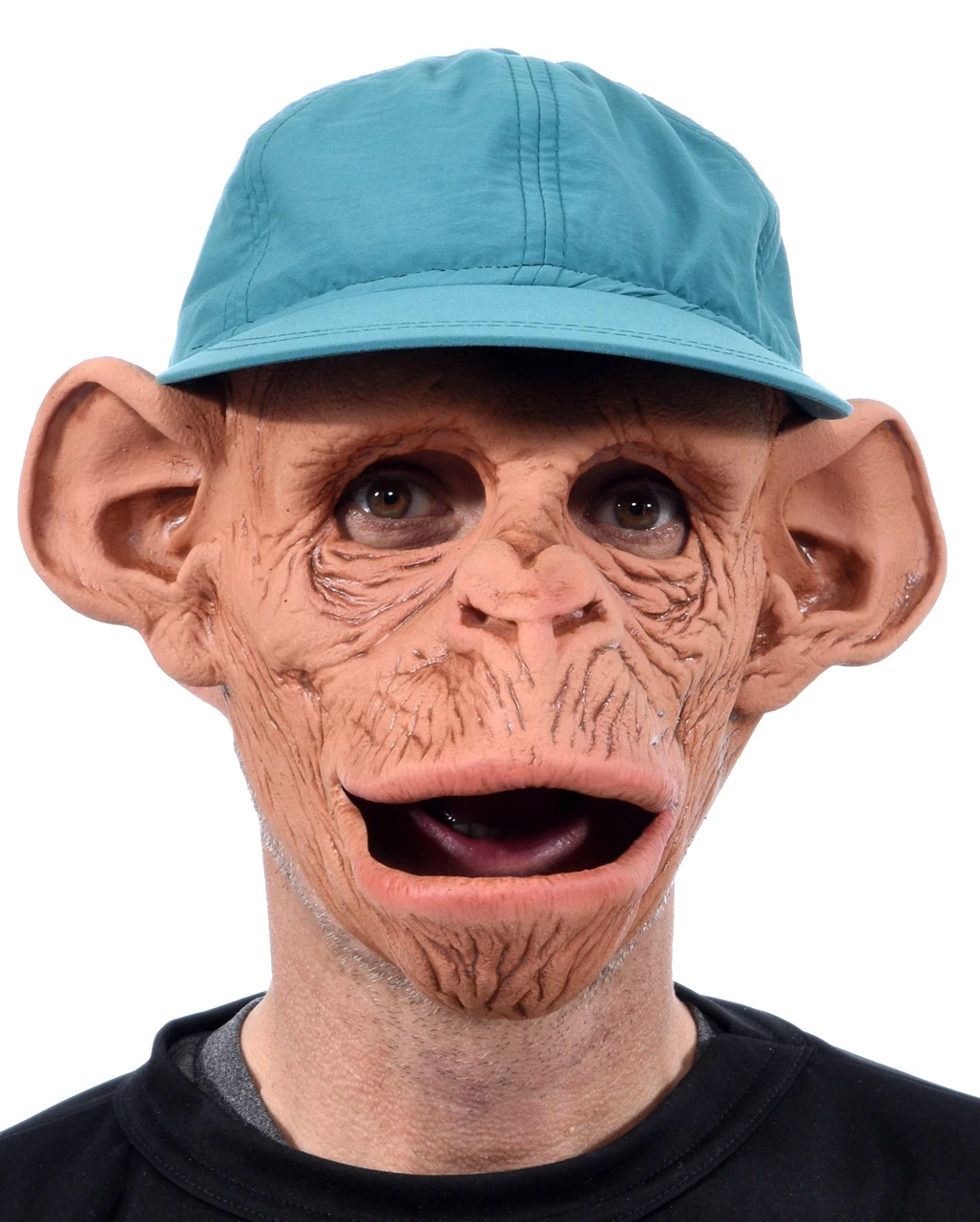 Schimpansen-Maske mit beweglichem Kiefer & Baseball Mütze