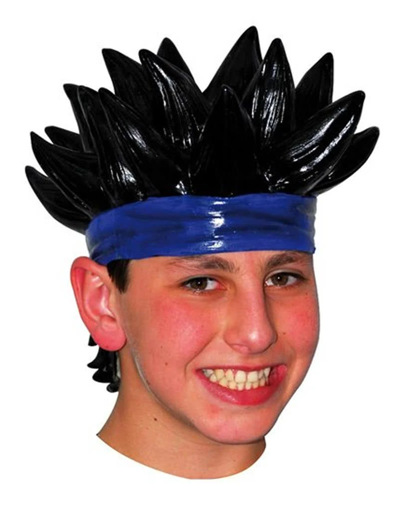 Mit der schwarzen Anime Perücke mit Stachelfrisur ais Latex verwandelst du dich blitzschnell in einen echten Manga-Boy mit cooler Stachelfrisur. Die freche Perücke motzt jedes Manga-Kostüm auf. Mit dem blauen Haarband wirkst du sportlich und wie ein echter Kämpfer. Damit bist du für jede Comic- & Manga-Konvention bestens gestylt.