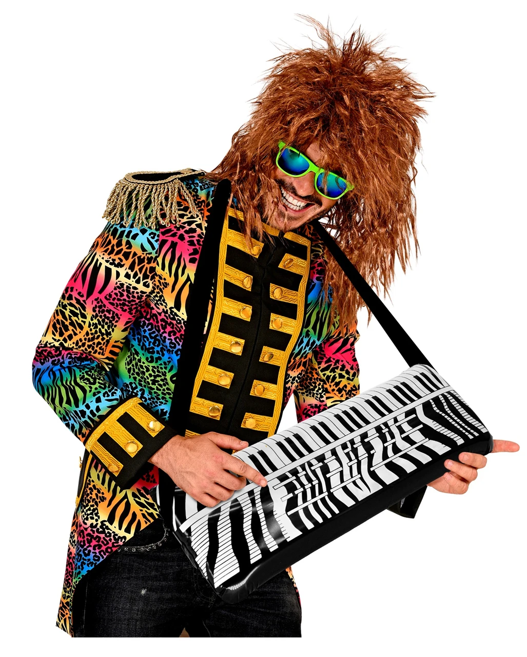 Unser aufblasbares Keyboard macht deine Popstar Verkleidung komplett. Mit dem Fake-Keyboard lässt sich dein Musiker Kostüm extrem aufwerten, aber auch als Karaoke Deko oder Faschingsdeko ist das luftgefüllte Keyboard perfekt. Mit dem praktischen Umhängegurt kannst du es lässig über die Schulter hängen und da es praktisch fast nichts wiegt, lässt sich dein aufblasbares Musikinstrument überall hin mitnehmen, ohne, dass es anstrengend wird. Hol dir dein cooles Aufblasbares Keyboard und werde damit zum Popstar. Ganz gleich, ob Halloween, Schlagerparty oder Karneval – in unserem Onlineshop findest du eine Menge Kostüme zur Ergänzung. Viel Spaß beim Stöbern.