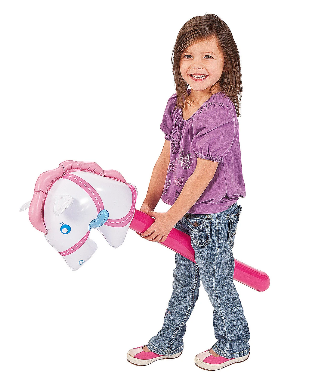 Fühle dich wie in einem Märchen mit unserem aufblasbaren Steckenpferd! Das Kinderspielzeug zum Aufblasen passt hervorragend als Accessoire und Dekoration auf Prinzessinnen und Cowgirl Geburtstagsfeiern!