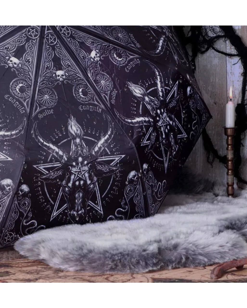 Gothic Sonnen & Regen Knirps Schirm mit okkulten Ziegenköpfen