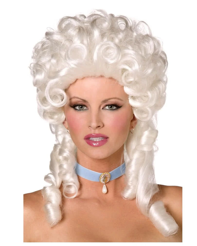 Mit der klassischen Turmfrisur der silberweißen Barock Damenperücke, besitzt du die perfekte Frisur, um damit dein Rokoko und Barockkostüm zu perfektionieren. Ganz gleich ob du als Marie Antoniette, Hofdame oder Königin auftreten willst, die Barock Damenperücke mit hohem Turmaufbau und Stöpsellocken auf der Seite, lässt dich zur historischen Figur werden. Die wunderschöne Dameperücke eignet sich wunderbar für historische Mittelalterfeste und Liverollenspiel.