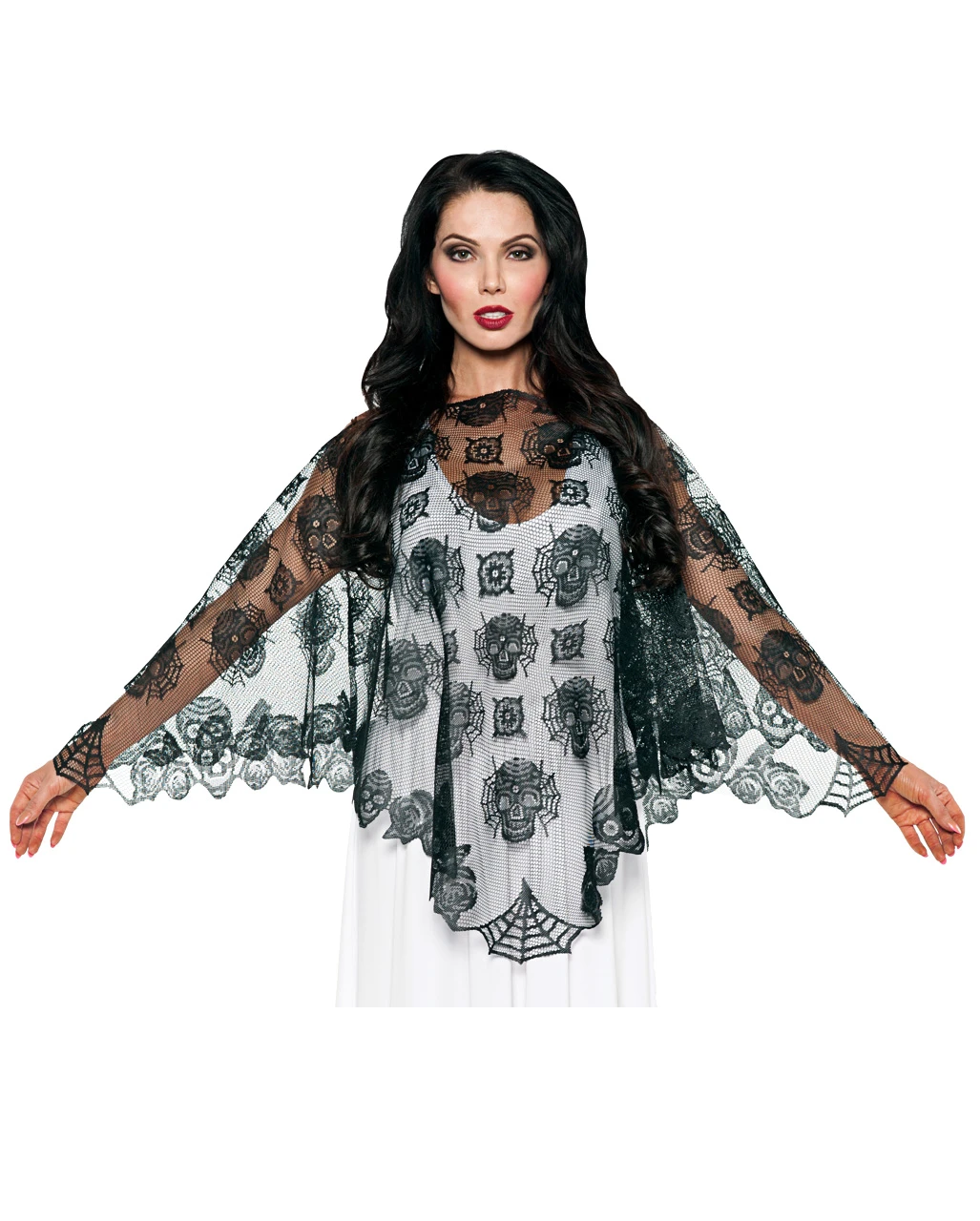 Lieferumfang: 1x Day of the Dead Spitzen Poncho