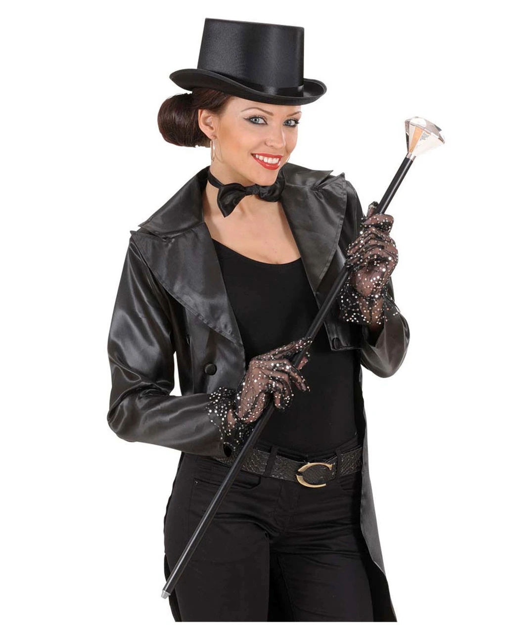 Der Gehstock Diamant ist ein erstklassiges Accessoire für verschiedene Kostümierungen. Der silber-glänzende diamantförmige Knauf verleiht dem circa 89 cm langen Gehstock ein edles Aussehen. Dies macht ihn zum passenden Begleiter bei einem Damenfrack schwarz und Vampir Baron Kostüm ML für die nächste Halloween Party.