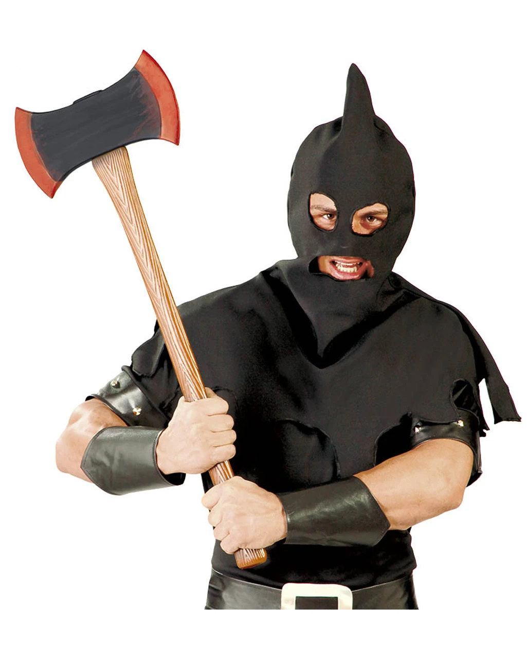 Die große doppelseitige Axt hat hat einen holzfarbenen Stil und eine schwarz-braune Schneide – da möchte man nicht gerade unter dem Schafott liegen. Um deinen Look zu komplettieren, empfehlen wir das Scharfrichter Herren Kostüm und den abgetrennten Kopf.