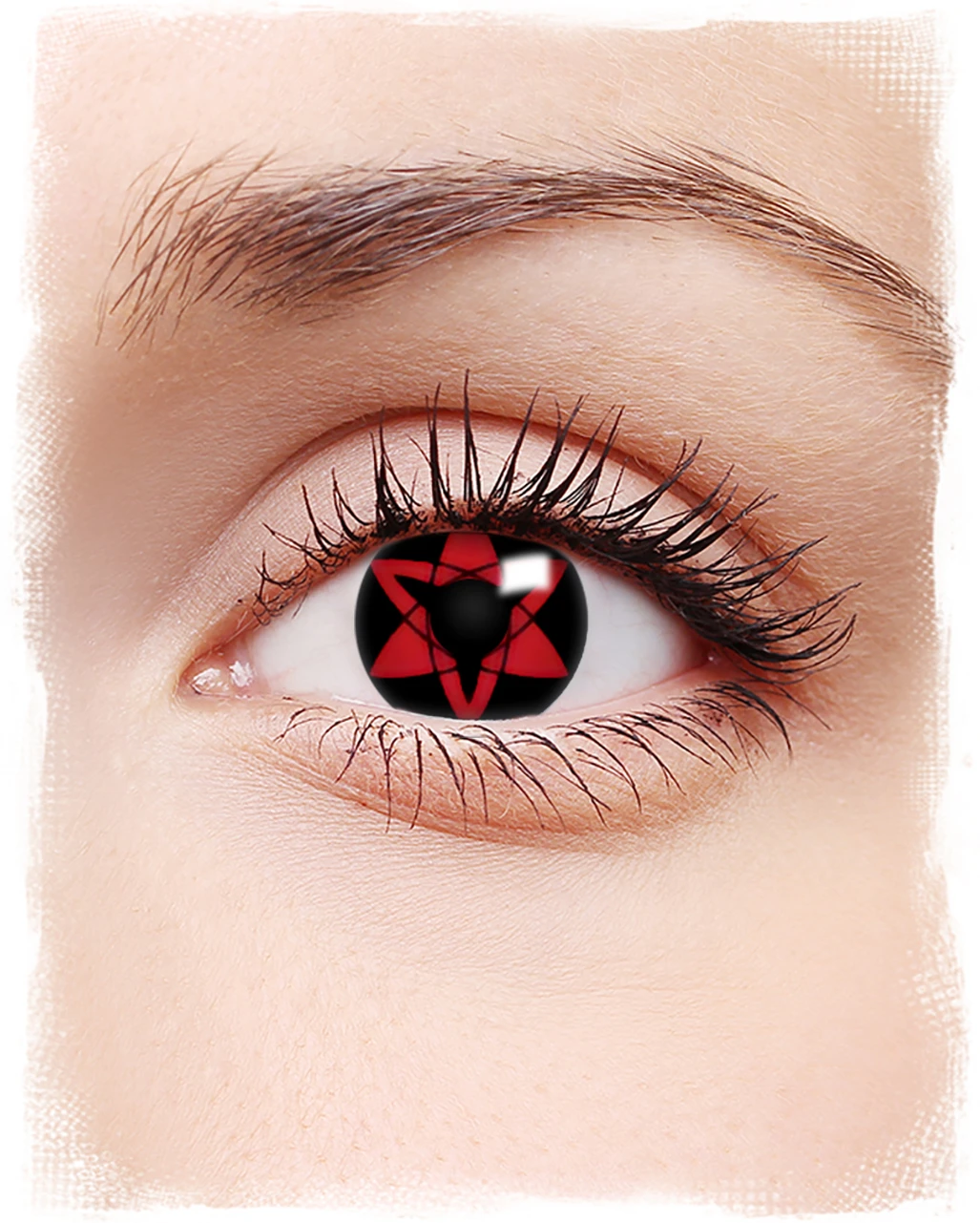 Die Eternal Mangekyou Sharingan Kontaktlinsen verleihen deinem Anime Kostüm am Cosplay Event einen besonderen Schliff. Das schwarz-rote Motiv kommt besonders bei Sasuke-Cosplay Verkleidungen sowie allen außergewöhnlichen Anime Kostümen super an.