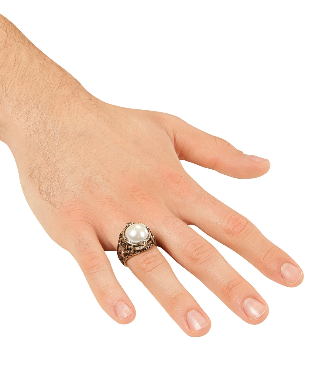 Goldfarbener Fingerring mit Perle als Kostümzubehör
