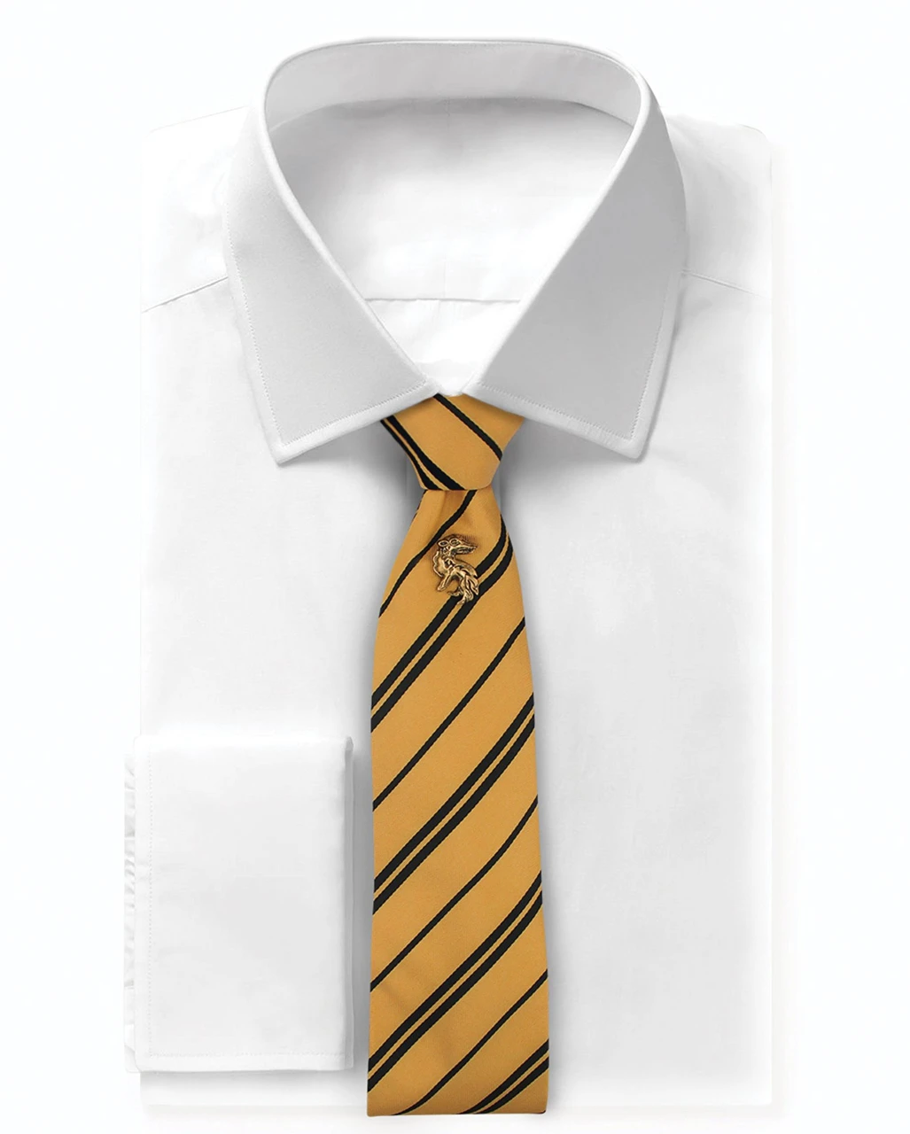 Kaum ein Buch oder eine Verfilmung ist erfolgreicher als J. K. Rowlings „Harry Potter“. Kein Wunder, denn die Abenteuer von Ron, Harry und Hermine ziehen sowohl Kinder, als auch Erwachsene in ihren Bann. Das Resultat ist ein eigener Themenpark in den Universal Studios, gebrochene Vorbestellungsrekorde in den USA und Großbritannien, Meterlange Schlangen vor Buchhandlungen und begeisterte Hogwarts-Fans im Magier Kostüm. Es ist schon ein echter Hype, den der kleine Zauberlehrling weltweit ausgelöst hat. Nun haben wir die Harry Potter Hufflepuff Krawatte mit Pin in unserem Sortiment. Diese lizenzierte Harry Potter Krawatte kannst du zum nächsten Kostüm Event tragen und ordentlich Eindruck schinden.