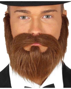 Der Kastanienbrauner Vollbart mit Schnurrbart wird alle zum Staunen bringen. Wer mag wohl hinter dieser beeindruckenden Gesichtsbehaarung stecken, werden sich die Partygäste fragen. Als Neandertaler mit wild strubbeligem Bart oder als Gentlemen mit gepflegtem Wuschel um Kinn und Mund, dieses Kostümaccessoire steht Dir wirklich immer gut zu Gesicht. Einfach genial, wie schnell es Dich verkleidet und bis zur Unkenntlichkeit kostümiert. Damit bist Du natürlich auch als angesagter Hipster auf der Faschingsparty ein echter Mädchenschwarm oder als verrückter Hillibilly auf der Halloweenparty der Hit auf der Tanzfläche.