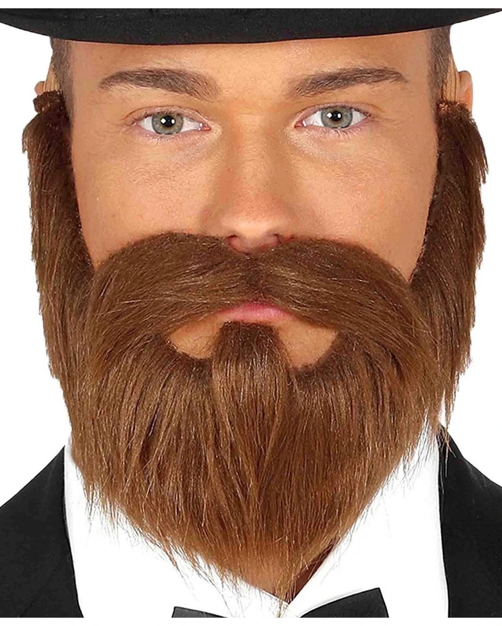 Der Kastanienbrauner Vollbart mit Schnurrbart ist ein sehr vielseitig einsetzbares Kostümzubehör, das sich sehr leicht anlegen lässt. Das Kunsthhaar besitzt eine schön satte kastanienbraune Färbung und sieht sehr natürlich aus. Durch das Gummiband hält es gut und ist in der Größe verstellbar. Zu vielen Verkleidungen passend kannst Du es zum Beispiel mit einem Höhlenmensch Kostüm XL kombinieren. Oder wie wäre es mit einemVenezianischer Frack schwarz-silber?