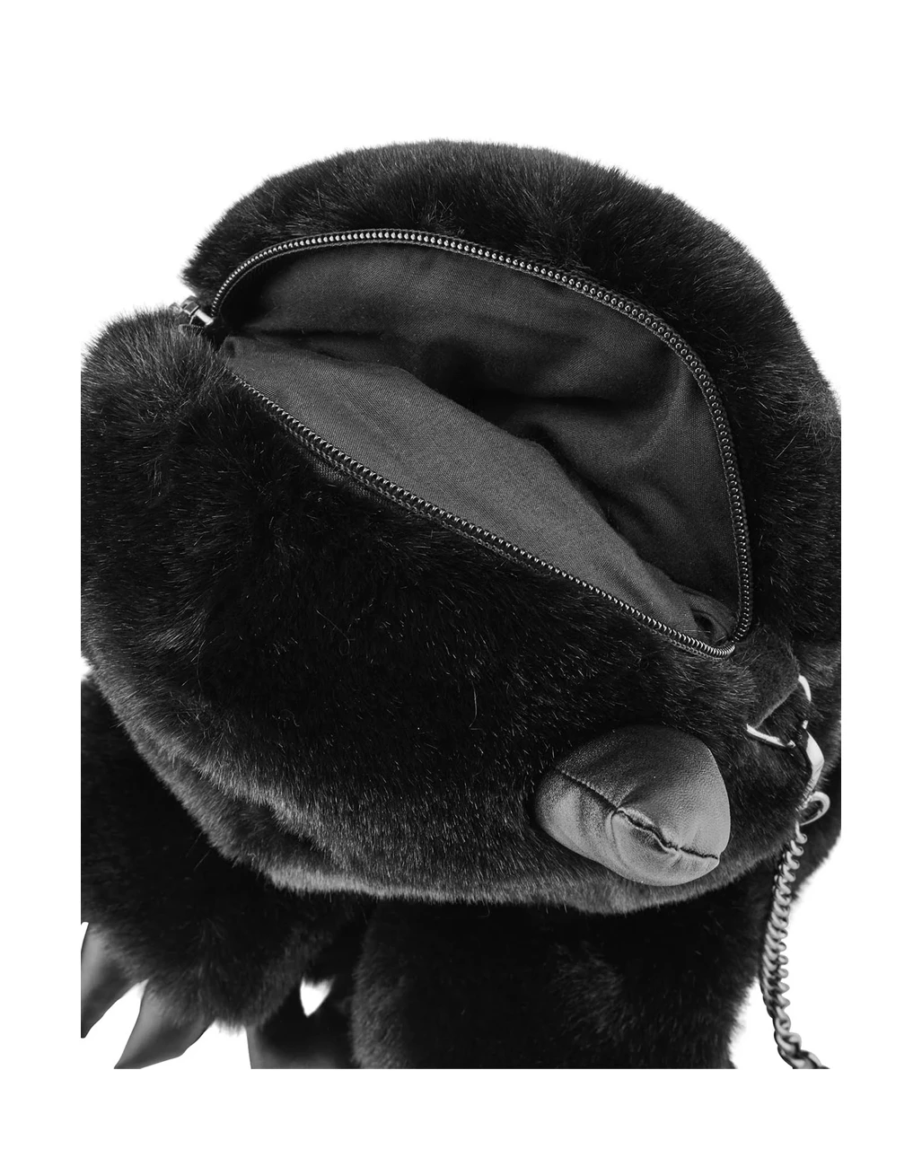 Mit unserer KILLSTAR Demon Plush Handtasche bekommst du ein Gothic Accessoire aus weichem Kunstpelz. Die niedliche Monster Handtasche begeistert mit großen Augen, Flügeln und niedlichen Hörnern. Ein Reißverschluss sowie ein Kettenriemen rüsten dich für die nächste Clubbing-Nacht mit deiner Gothic Clique.