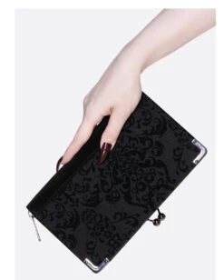 Die KILLSTAR Haunted Soul Geldbörse ist wunderschön verziert. Auf der Vorderseite zeigt sich ein beflocktes Samtmuster. Clipverschluss, Reißverschlussfächer und mehrere Taschen machen dein KILLSTAR Accessoire zum praktischen Begleiter. Der Geldbeutel findet Platz in unserer KILLSTAR Black Widow Schultertasche.