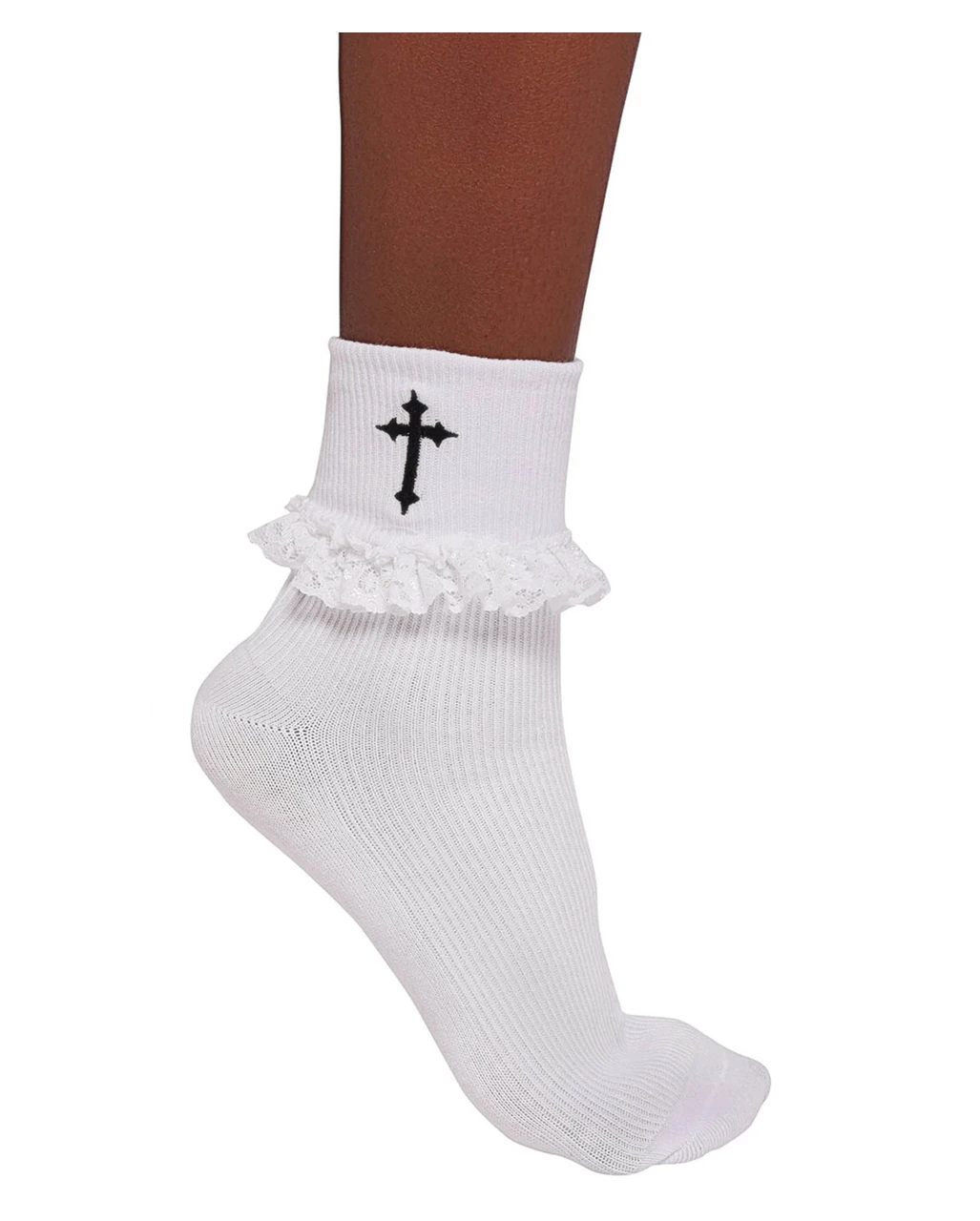 - Weiße, weiche Söckchen mit Kreuz & Rüschen