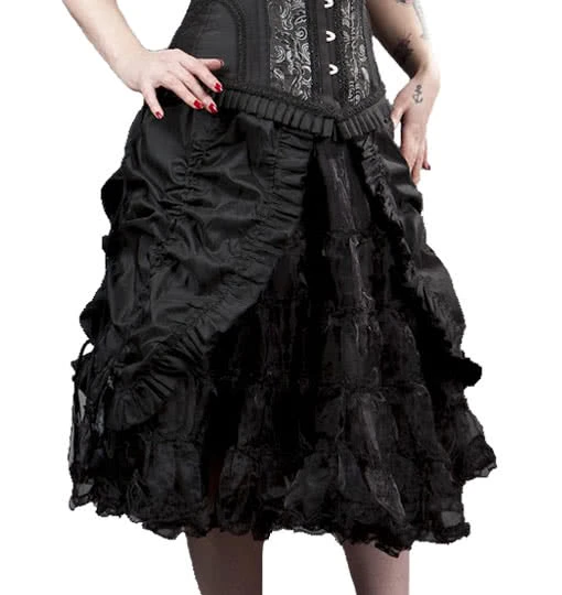 Zusammen mit dem Satin Vollbrustkorsett mit Rüschen und dem Inamagura halbhoher schwarzer Spitzenstiefel sieht der Chiffon Rock einfach fantastisch aus.