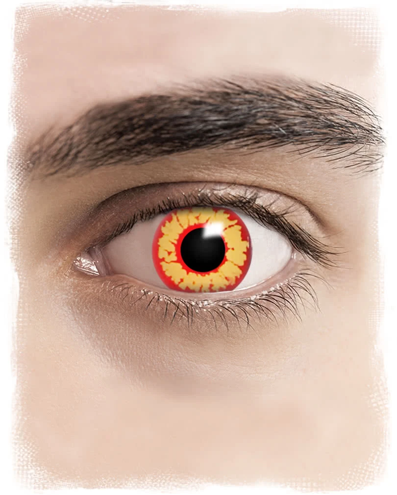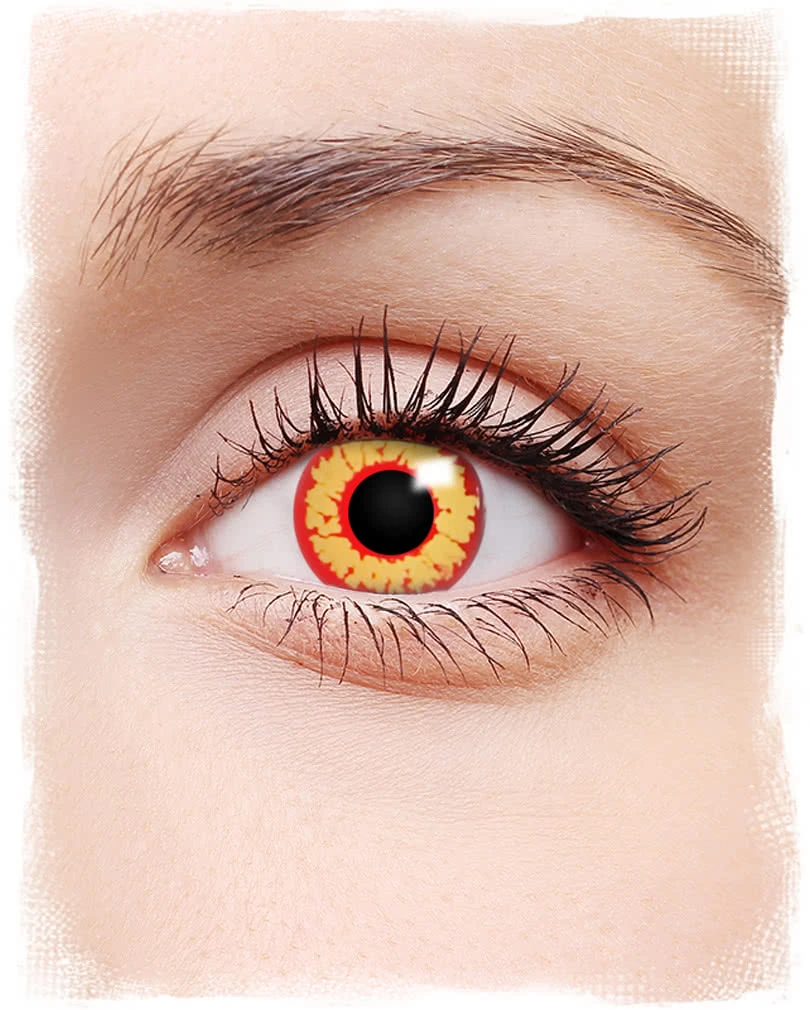 Die gelb/orangen Motivlinsen sind die perfekten Kontaktlinsen um damit Fabelwesen aus der Fantasywelt darzustellen. Lodernde Flammen als bedruckte Motivlinsen lassen aus dir einen Dämon oder bösen Ork werden, der seinen Platz normalerweise tief in der Erde zusammen mit einem Vulkan verbringt. Die eindrucksvollen farbigen Kontaktlinsen Ring of Fire geben deinem Augenblick den passenden Spezial Effekt um damit Liverollen Spiel Charakter oder Cosplay und Comic Figuren darzustellen.