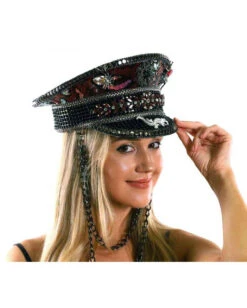 Hochwertige Schirmmütze mit Glitter Pailletten, Glitzersteinen & Kette