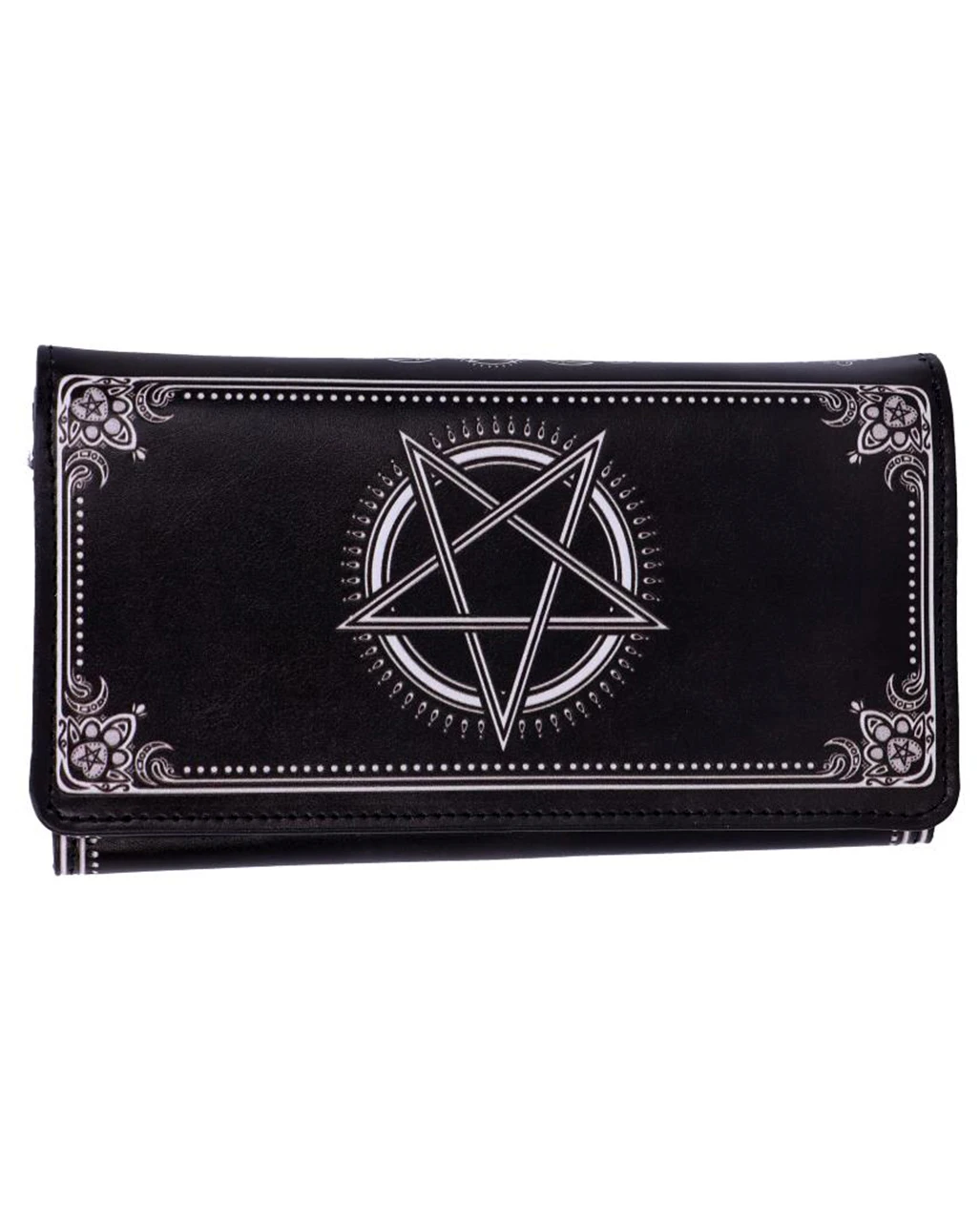 Die Pawzuph Kult Cutie Geldbörse besitzt eine klassische Form und gehört in jedem Fall in deine Tasche, wenn du deine Gruft verlässt. Die geprägte Katze mit Ziegenhörnern und das Pentagramm sind ein echter Blickfang. Auch als Geschenk ist das Gothic Portemonnaie eine exzellente Wahl. Der mit kunstvollen Silberdetails verzierte Pawzuph Geldbeutel ist außerdem aus Kunstleder gefertigt und hat mehrere Fächer für Karten, Bargeld und Münzen.