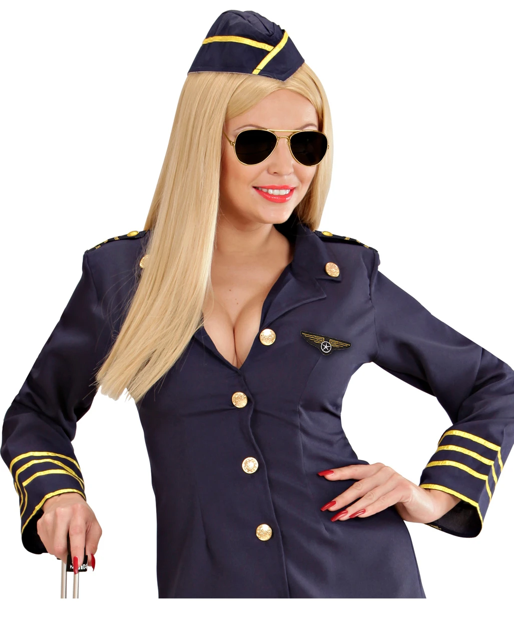Das Piloten Kostümzubehör Set besteht aus einer verspiegelten Sonnenbrille, zwei stattlichen Schulterklappen mit goldfarbenen Knöpfen und Streifen sowie einem Flugkapitän-Abzeichen. Für die Frau an deiner Seite empfehlen wir das Stewardess Kostüm mit Mütze und die Stewardessen Handtasche.