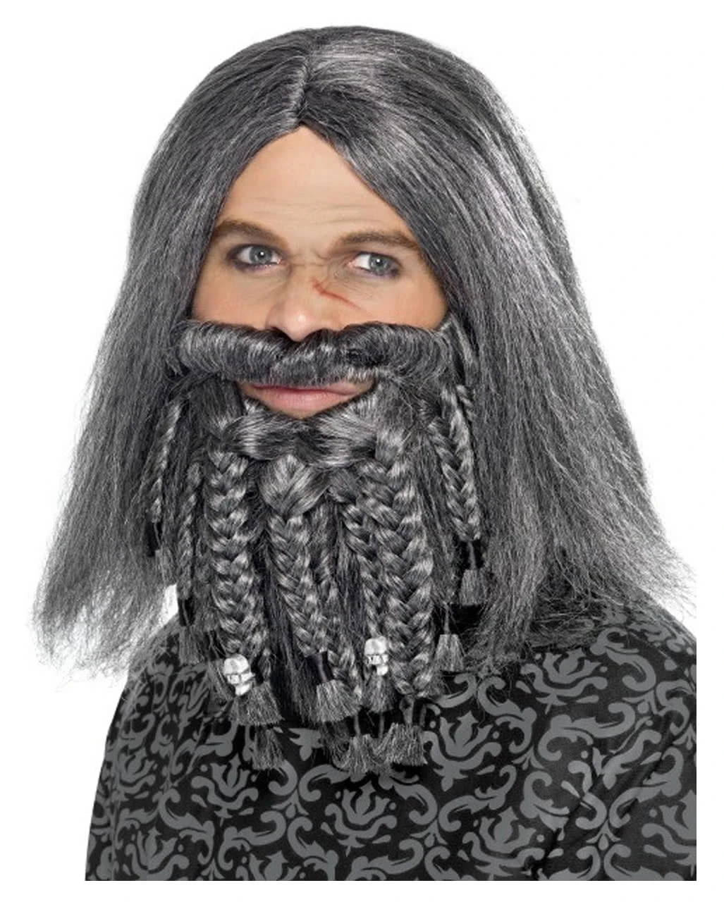 Kostümiere dich jetzt als tollkühner Pirat oder kämpferischer Wikinger. Mit der grauen Piraten & Wikinger Perücke und dem dazugehörigen Bart mit geflochtenen Zöpfen, bist du schnell als verwegener Seeräuber und stolzer Germane zu erkennen.
