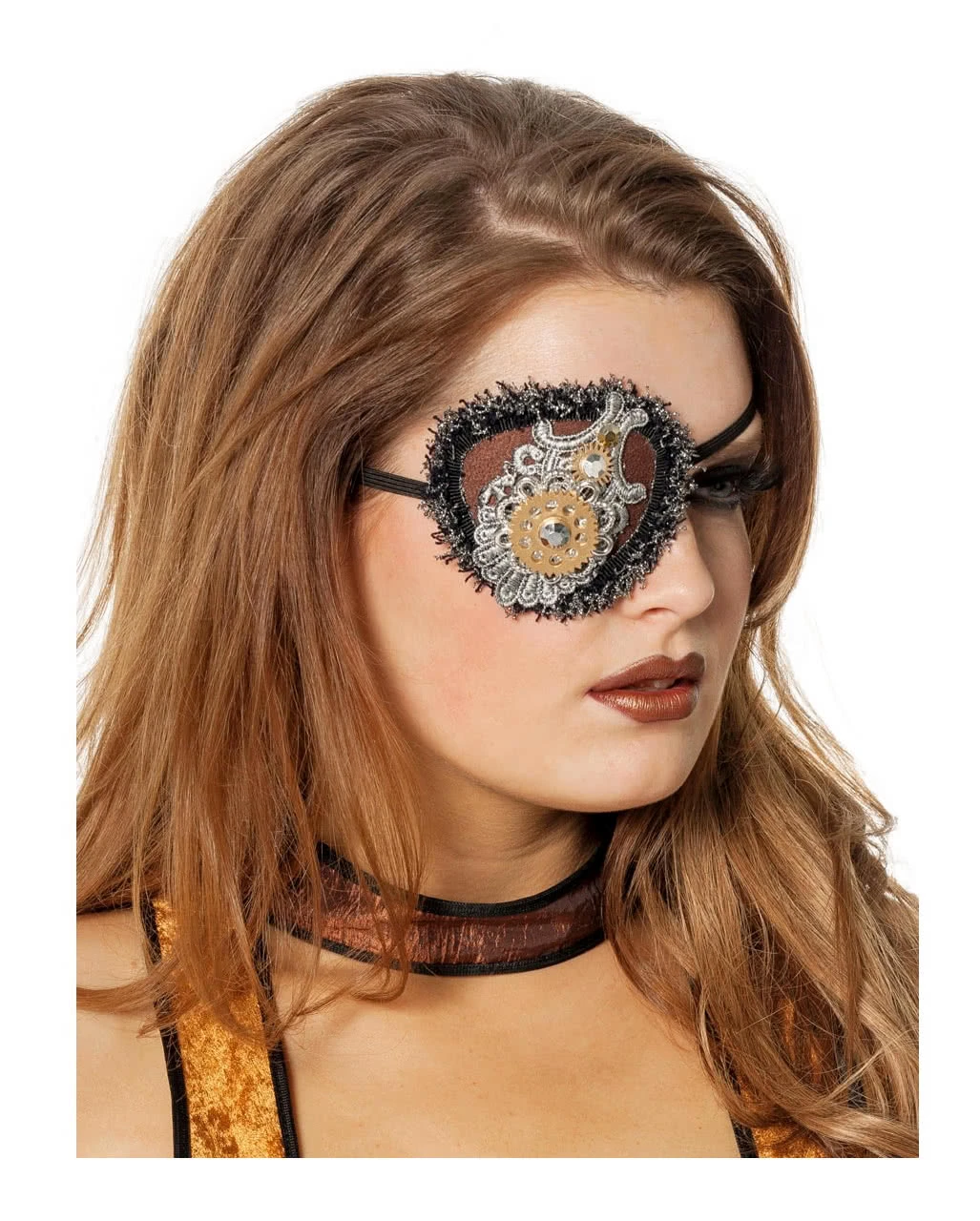 Verkleide dich als Seeräuberin im Stil von Waterworld & Mad Max und besitze mit der Retro Steampunk Augenklappe, das passende Kostümaccessoire.