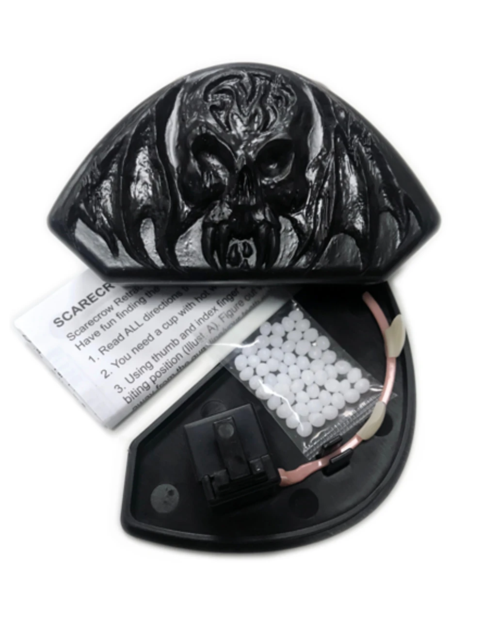 Die Scarecrow Einziehbare Vampirzähne sind ein riesiger Sprung vorwärts in der Kunst der Vampirzähne und der mechanischen Effekte. Voll funktionsfähige einziehbare Fangzähne, die nach oben aktiviert werden, um den verblüffendsten Reißzahneffekt zu erzielen, der je für Halloween, Cosplay, Film oder Live-Auftritte verfügbar war! Einfach zu benutzen, bequem zu tragen, natürlich zu sprechen, zu aktivieren oder zu verstecken, wann immer Sie wollen.