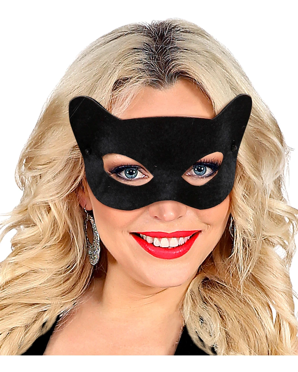 Die samtig weiche Katzenaugen Maske schmeichelt deinen Augen und lässt diese zum sinnlichen Blickfang werden. Die Katzenmaske wird mit einem Gummiband am Hinterkopf gehalten.