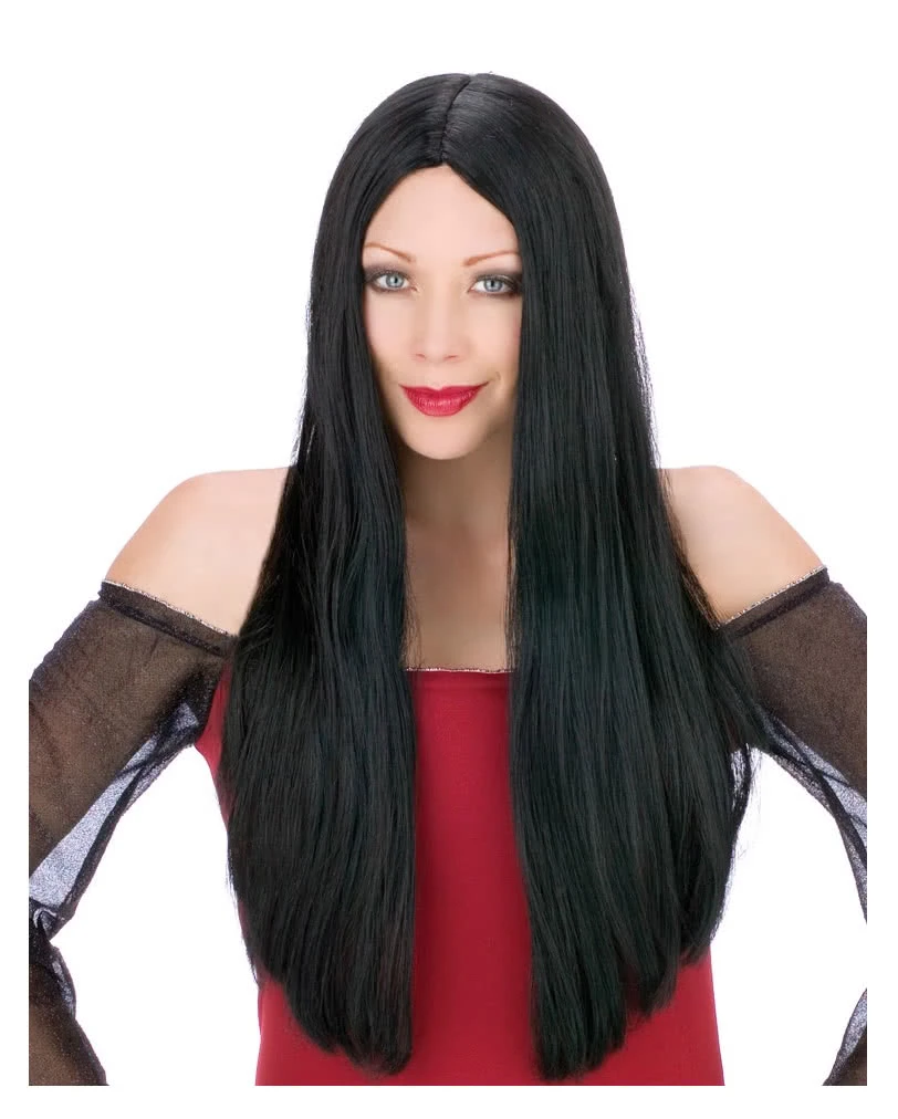 Die schwarze Langhaar Perücke aus Kunsthaar hat unzählige Einsatzmöglichkeiten, angefangen von Charakteren wie Morticia, die böse Fee, Hexen und Vampirbräute über Cher, gibt es kaum ein Kostüm das durch diese Kunsthaarperücke nicht aufgewertet werden kann. Die schwarze Langhaar Perücke ist perfekt um damit Halloween und Karneval zu erleben und sich damit in eine andere Person zu verwandeln. Mit der schwarze Langhaar Perücke kann selbst die giftigste Hexe vor Neid erblassen!