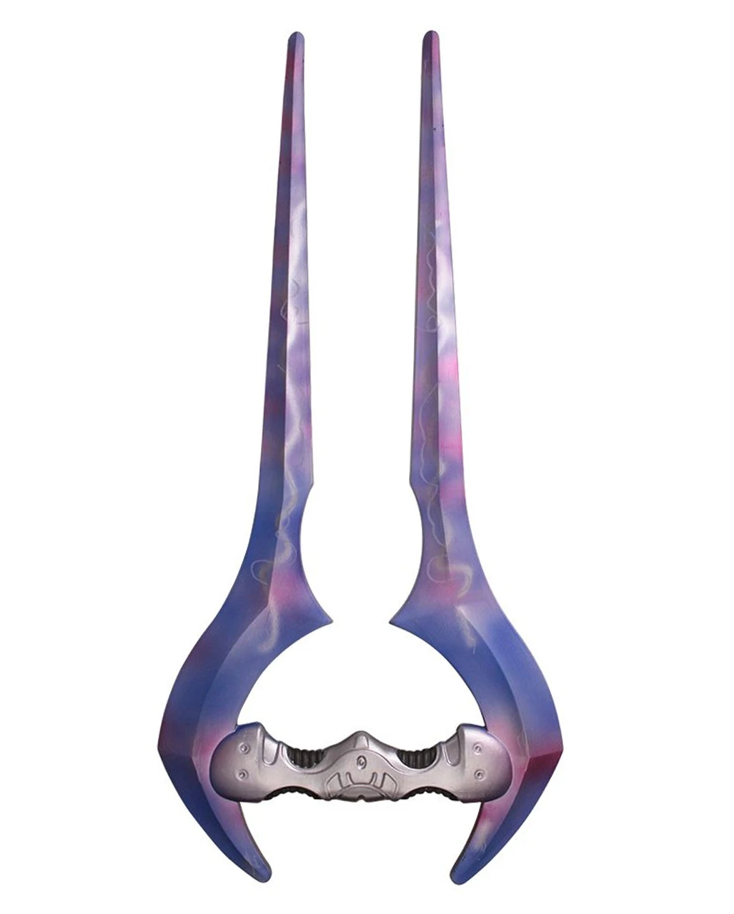 Die SciFi Energieschwert Polsterwaffe besticht durch ihre futuristische Optik. Geformt wie ein Science-Fiction-Raumschiff, stellen die violetten „Schneiden“ die Klingen der LARP-Waffe dar. Der silberne Griff des Halloween-Kostümaccessoires liegt angenehm in der Hand. Durch das verwendete Material – Fiberglaskern mit Schaumstoff – eignet sich das Science-Fiction-Schwert perfekt für heroische Schlachten, ist dabei aber völlig ungefährlich. Noch mehr SciFi-Waffen wie das LED Tri-Saber Lichtschwert mit Sound blau und den Halo Needler Master Chief haben wir ebenfalls im Horror-Shop.com!