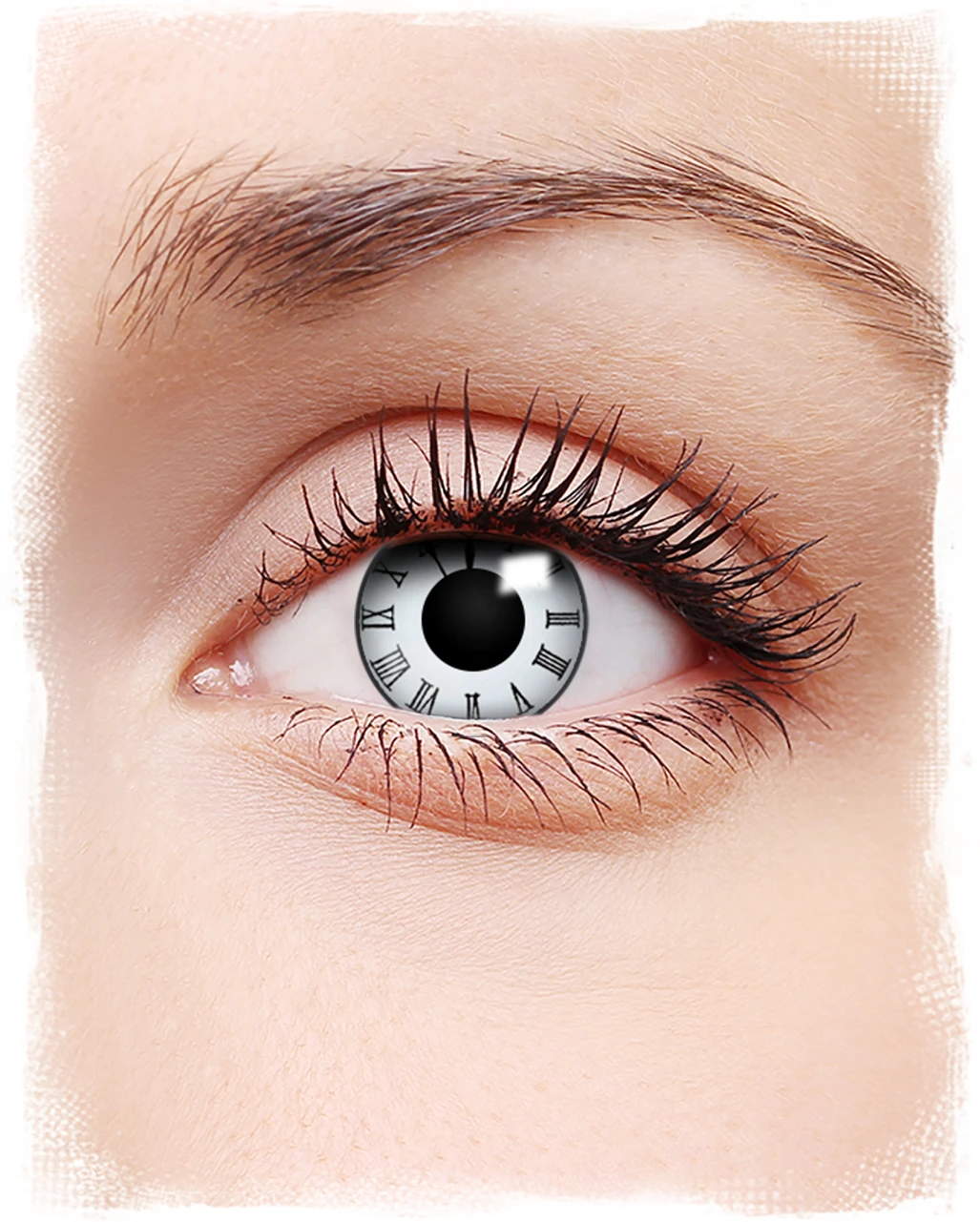 Weiße Tick Tock Clock Kontaktlinsen für dein Alice & Fantasy Make-Up