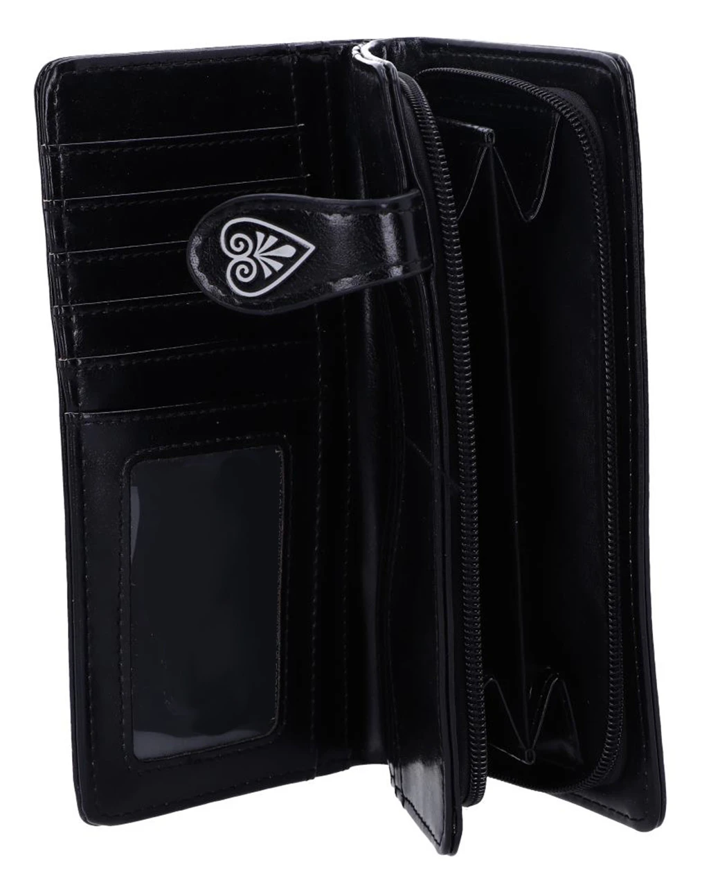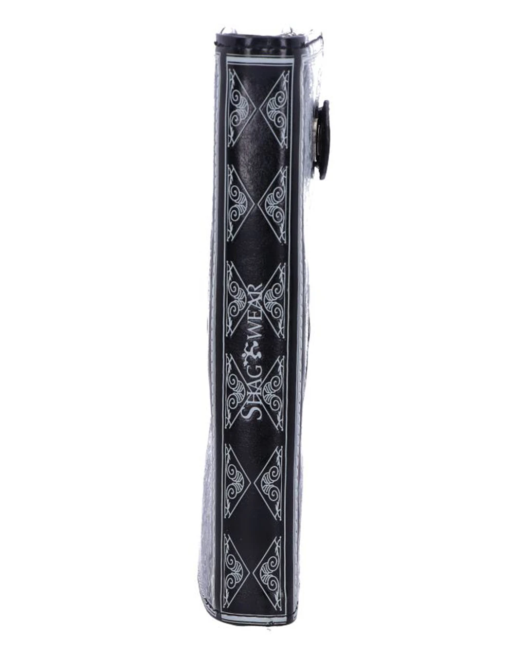 Damit ist der Totenschädel Tarot Geldbeutel schon mal ein echter Hingucker, der Diebe und Langfinger abschrecken könnte. Aber nicht nur der grinsende Totenkopf sorgt für Sicherheit. Geschlossen wird das Portemonnaie mit einem Druckknopf auf einer schwarzen Leiste. Mit einem großen Reißverschlussfach ist diese alternative Geldbörse klein genug, um in jede Handtasche zu passen und gleichzeitig geräumig genug, um alle deine Karten und dein Bargeld unterzubringen. Passend dazu findest du bei uns noch andere Gothic Fashion Accessoires wie die KILLSTAR Grave Digger Totenkopf Handtasche.