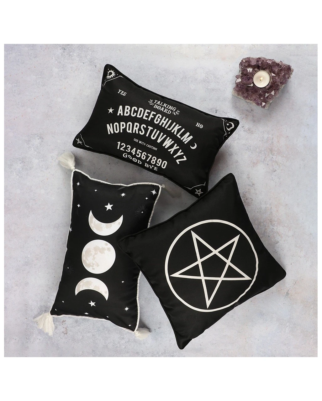 Dekoratives Zierkissen im okkulten Design der dreifaltigen Göttin