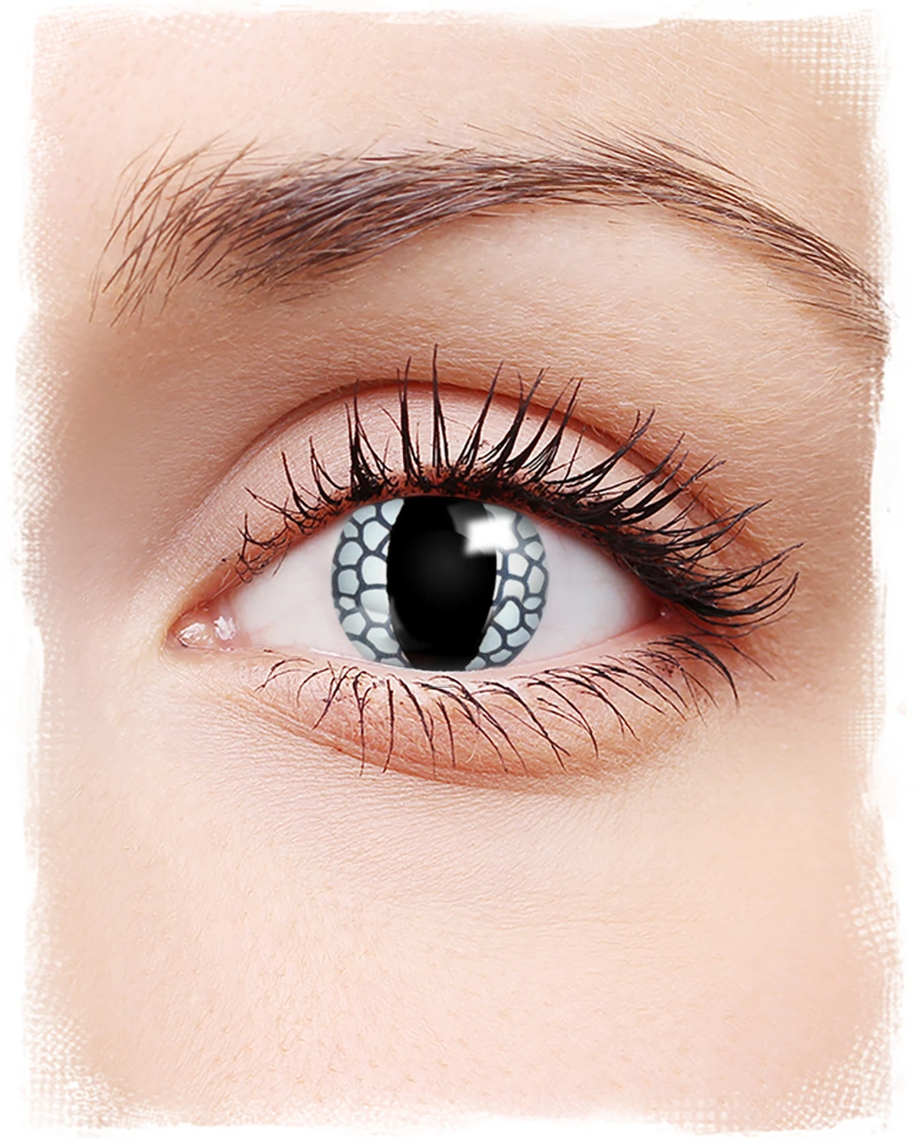 Durch ihre lange Haltbarkeit von bis zu 12 Monaten lassen sich farbigen Motivlinsen öfter wiederverwenden. Die Weißen Drachenauge Kontatklinsen sind Jahreslinsen und eignen sich für helle und dunkle Augen