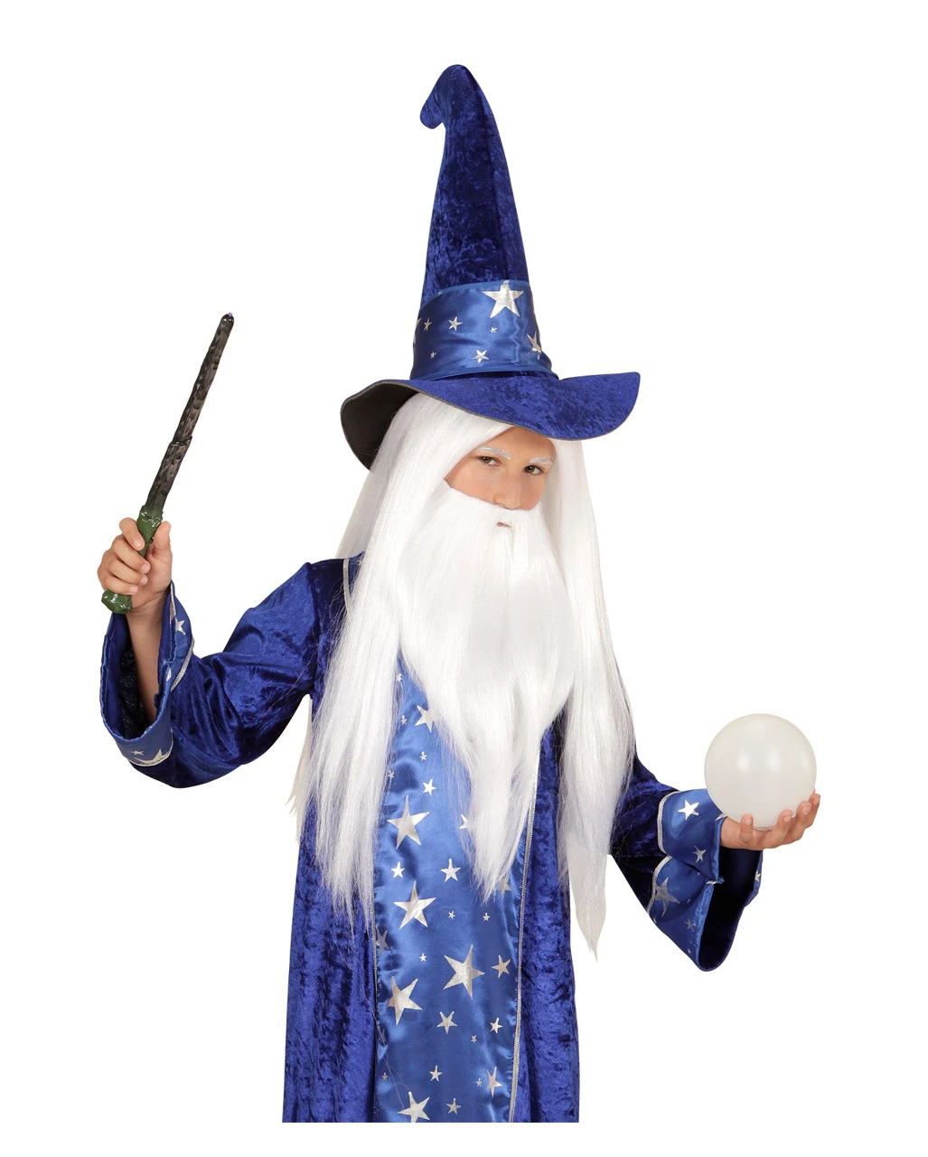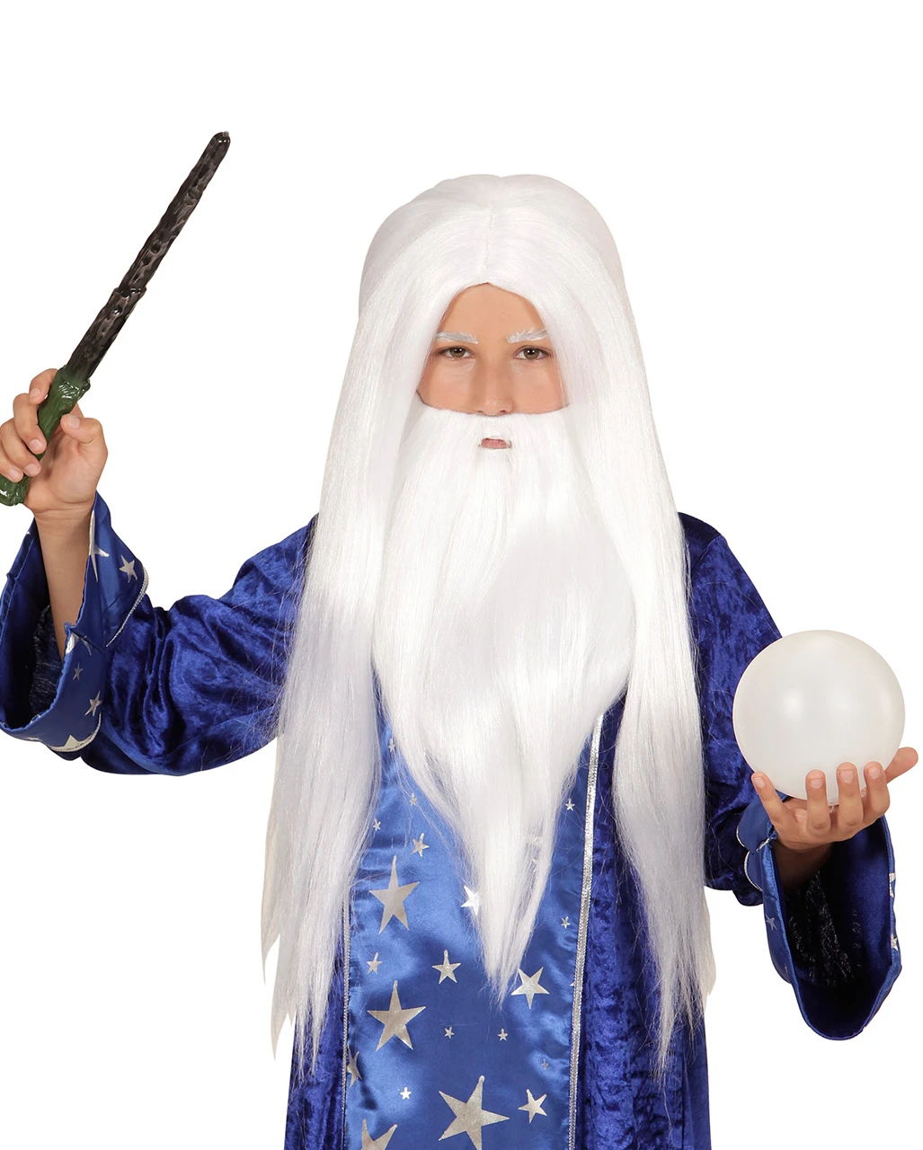 Lange Wizard Perücke mit Magier Bart für kleine Zauberer